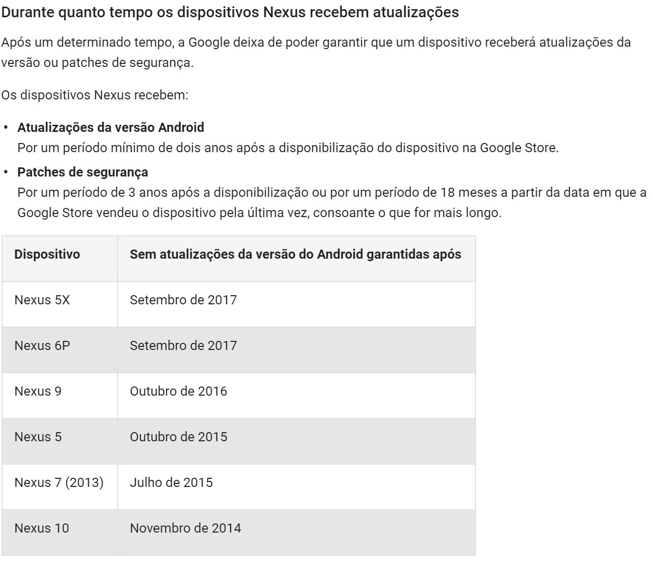 Pois bem, para evitar grande parte das dúvidas, a Google actualizou o seu site de suporte ao utilizador, passando a apresentar as datas em que cada um dos Nexus deixa de ter suporte garantido.