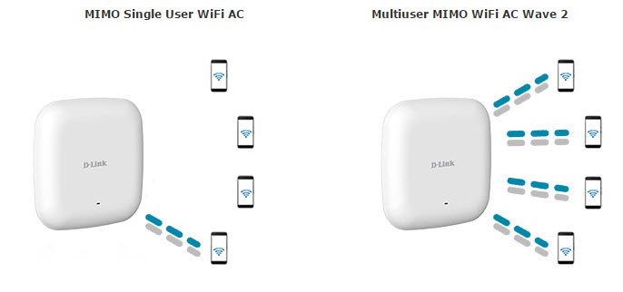 Para responder às necessidades de acesso à internet em ambientes de alta densidade de utilizadores, o Ponto de Acesso DAP-2680 AC1750 integra Wave 2 com a tecnologia MU-MIMO, que permite transmitir simultaneamente para múltiplos dispositivos, com desempenho melhorado.